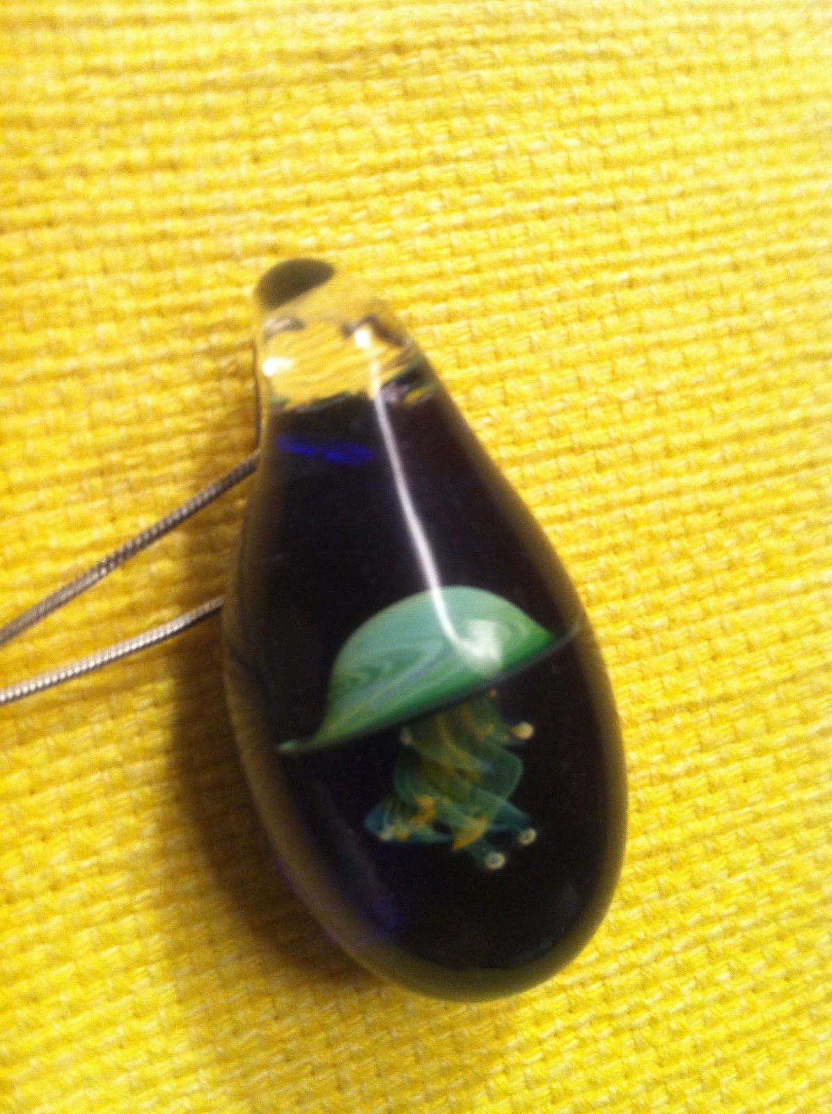 This tiny jellyfish is housed completely in a glass teardrop. Look at the tiny beautiful tentacles, the detail is absolutely amazing. Dr. Meow's passion is evident in every piece of her work.